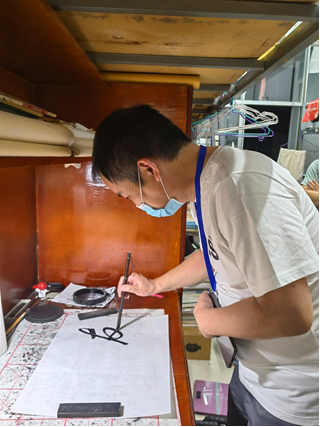 (图为周乐成书记在学生宿舍与学生交流书法时所写)