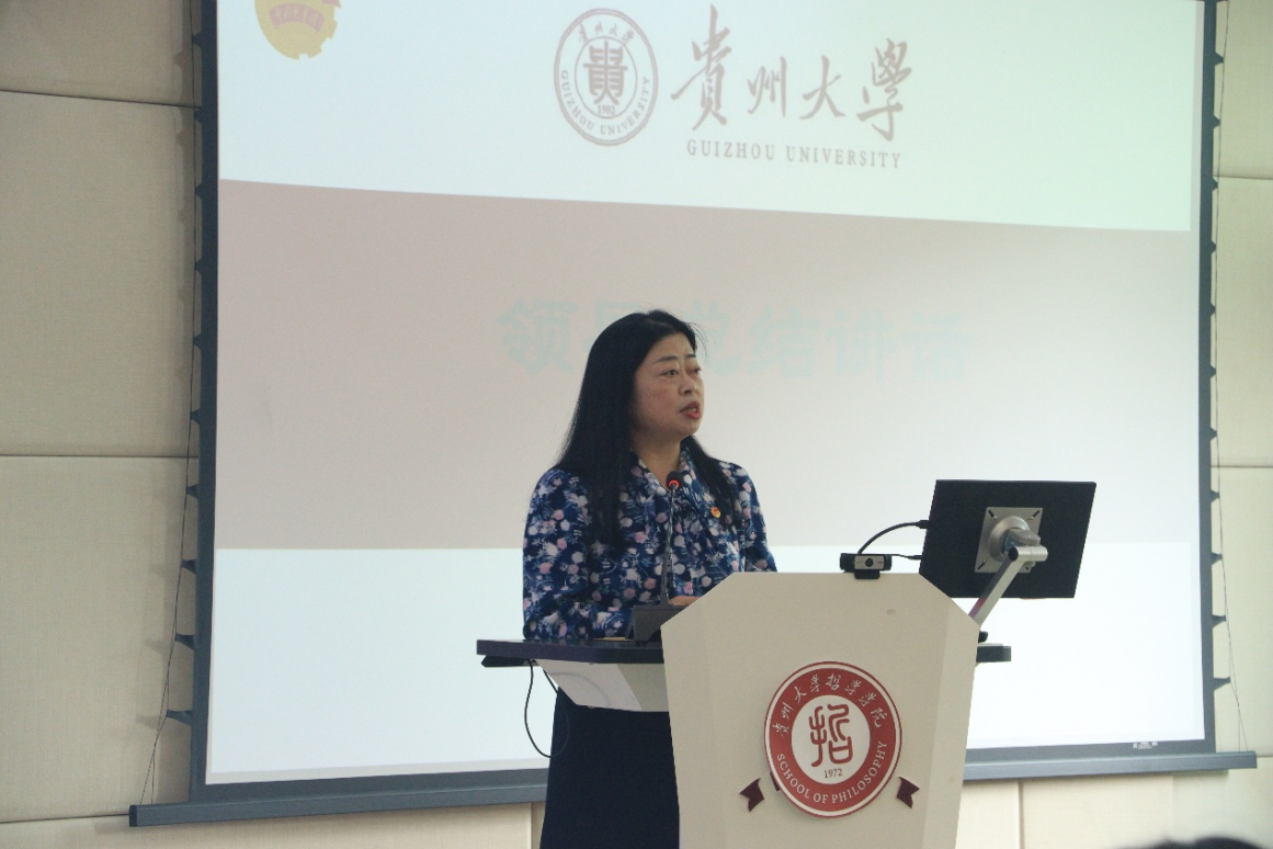 会议第八项,哲学学院党委书记黄梅总结讲话。她寄语同学们青春逢盛世,奋斗正当时!希望新一届团学干部能以此次大会为新的起点,肩负起时代赋予的光荣使命,团结带领全院同学,在实现中华民族伟大复兴的生动实践中放飞青春梦想,在推进哲学学院高质量发展的进程中书写崭新篇章!