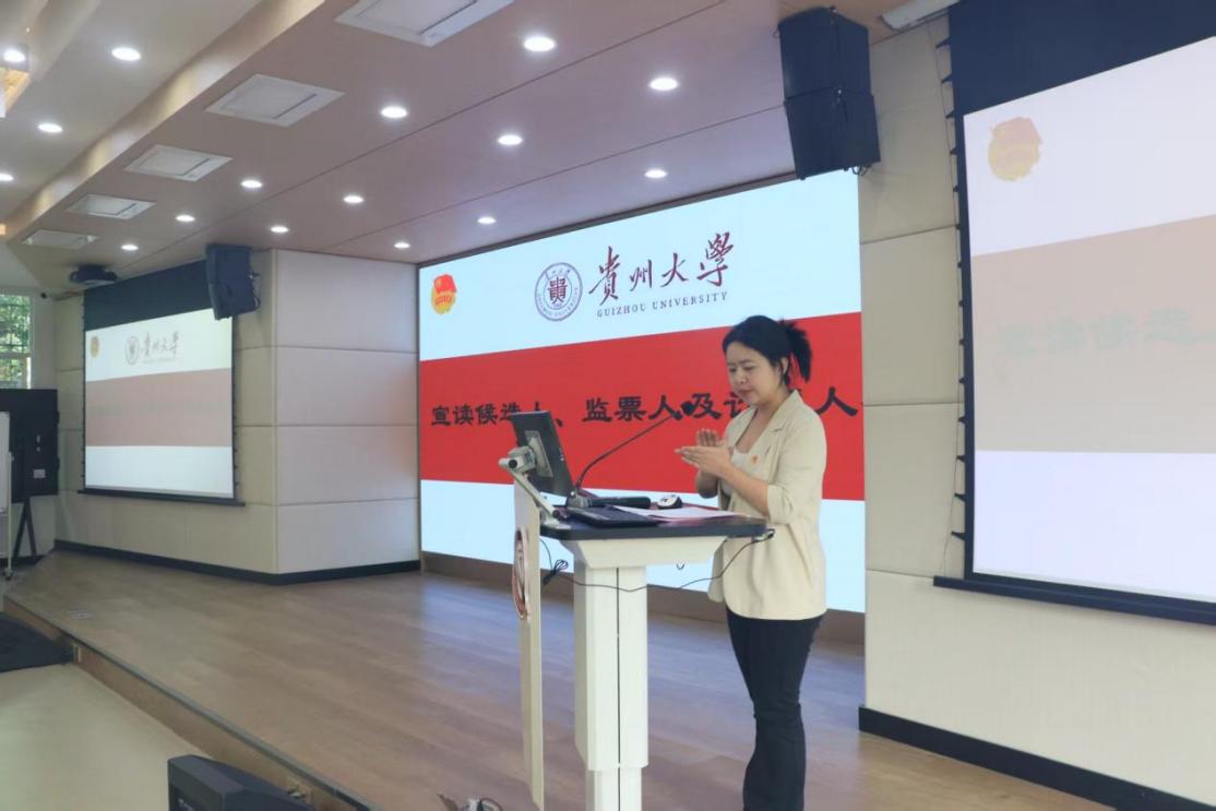 会议第六项,宣读第九届研究生团总支书记、研究生会主席团、团委副书记与学生会主席团的候选人名单以及选举办法,并组织学生代表有序进行民主投票。
