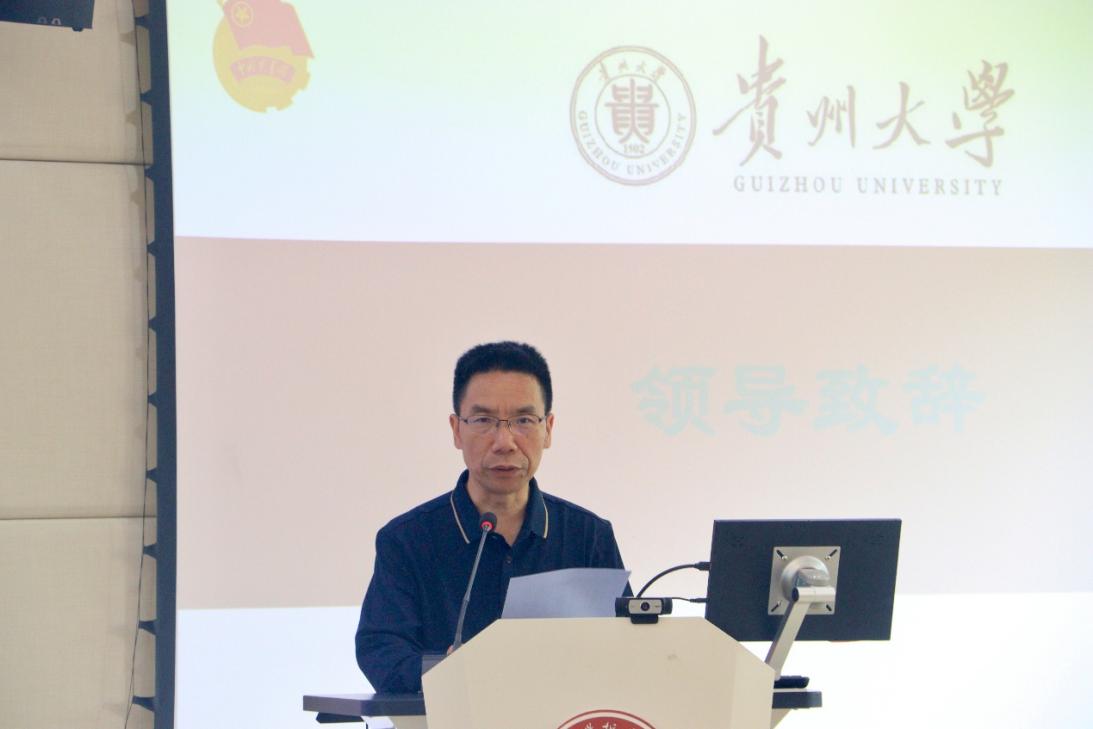 随后,学院党委委员、副院长(主持行政工作)龚晓康教授致辞。他提到隆重举行贵州大学哲学学院团委换届大会、第十次学生代表大会暨第十次研究生代表大会,这既是我院青年学子政治生活中的一件要事,也是一场汇聚青春理想、共绘发展蓝图的盛会。在学院党委的领导和校、院团委的指导下,我院团委与学生会、研究生会与研究生团总支,在思想引领、组织建设、学术创新、文化体育、社会实践等多个方面,取得了令人欣慰的成绩。他对新一届学生组织提出了四点期望:第一,筑牢信仰根基,校准人生方向;第二,潜心学问钻研,锤炼真实本领;第三,勇于担当奉献,真诚服务同侪;第四,注重修身立德,发挥表率作用。