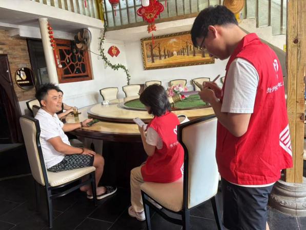 7月16日上午,实践队与龙井村驻村干部刘思语展开深度访谈。刘思语详细介绍了龙井村“一村百坊”的发展蓝图。她解释道,“‘百坊’并非实指一百家工坊,而是对村内多样化工坊的象征性概括,涵盖非遗工坊、食坊、宿坊等三大类型。”目前,龙井村已形成以刺梨酒坊、蜡染坊、香坊、银坊等为代表的非遗工坊20余家,食坊20家,宿坊30余家,初步构建起“文化+产业+旅游”的乡村振兴发展模式。