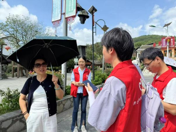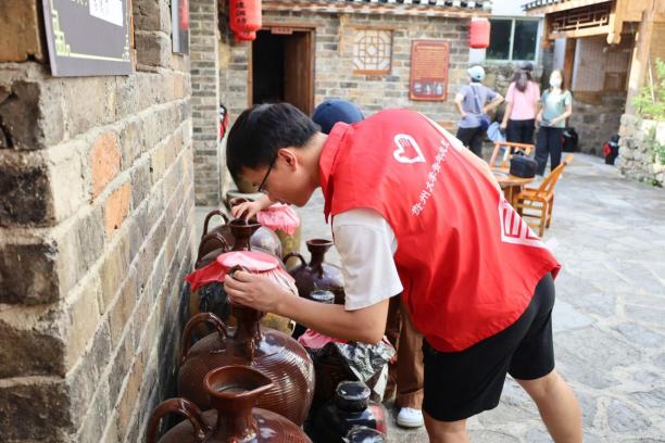 刚刚抵达龙井村,队员们便开始走访当地的村民和民宿经营者。在与他们的对话中,实践队了解到,乡村振兴政策实施以来,龙井村的生活环境发生了翻天覆地的变化。一位长期居住于此的村民感慨道:“现在年轻人不用再外出打工了,在家门口就能找到工作。”民宿经营者们也纷纷表示,村里的旅游产业正在逐步成型,茶坊、酒坊、染坊、银坊等特色工坊吸引了部分游客,但客流量依然不稳定,“宣传不够,产品走不出去”成为他们共同的困扰。