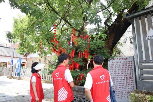 除了工坊,实践队还探访了龙井村的“千年古槐树”与“百年龙井”。这些自然与人文景观,不仅是村落历史的见证,也是布依族文化的重要载体。龙井村之名源于古井,井水清澈充沛,成为酿酒、制豆腐等工艺的上佳原料,也为村庄注入了源源不断的文化活力。
