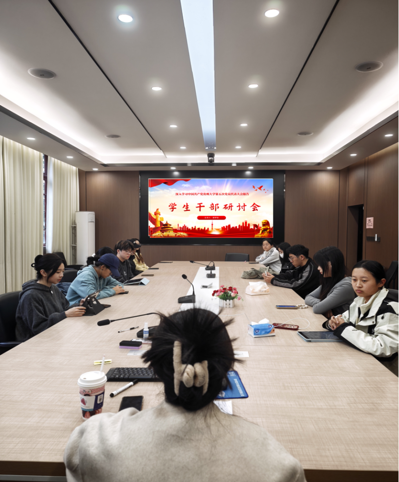 为深入学习贯彻中国共产党贵州大学第五次党员代表大会精神,切实发挥党建引领育人核心作用,凝聚学生骨干力量,赋能校园思想文化建设、学科发展提升、人才培养优化及学生全面成长等各项事业高质量发展,11月5日下午16:30,我院组织主要学生干部集中学习学校第五次党代会党委报告,并开展全员交流研讨。本次学习交流研讨会由学院团委书记晏梦勋主持,学院学生会主席团、研究生会主席团、研究生团总支、青协主席团及各团支部团支书参会。