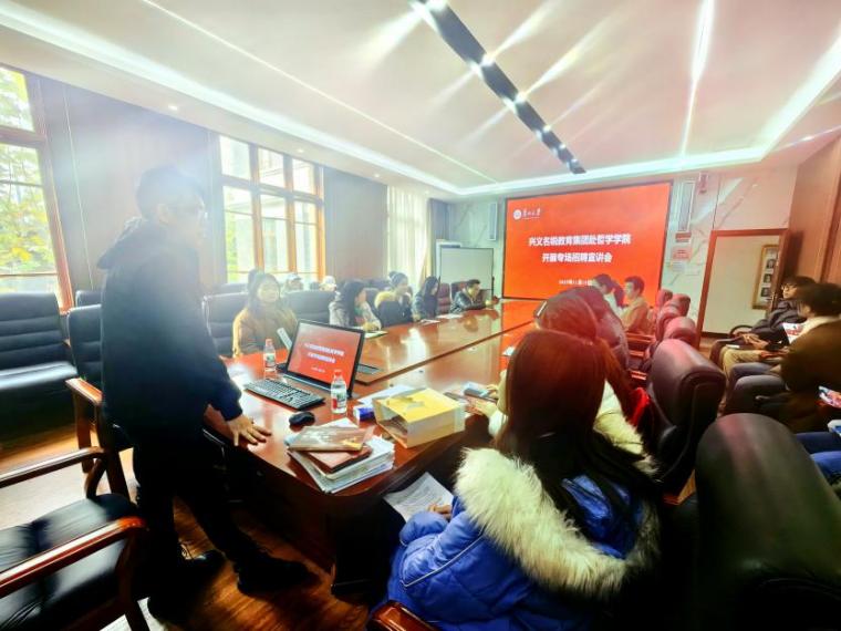 随后,陈元海校长表示对贵州大学以及我院毕业生的高度认可,我院2021级毕业生李福旭、彭小英在单位工作表现非常优秀,得到一致认可和肯定,为我院人才培养树立了良好的口碑,并就名锐教育集团的发展历程、企业文化、岗位设置、职责要求、薪酬福利及职业发展前景等方面作了全面介绍。陈元海校长、陈高祥校长分别对黔西南州自强中学以及安龙县盘江学校进行招聘宣讲。在互动环节中,现场气氛热烈,同学们围绕课时安排、工作内容、晋升机制及个人成长空间等问题踊跃提问,两位校长均逐一予以细致的指导解答。