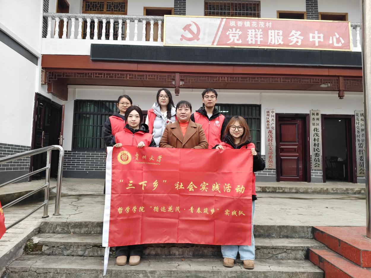 2026年1月12日至1月15日,贵州大学哲学学院“循迹花茂·青春筑梦”社会实践队一行8人,赴贵州省遵义市枫香镇花茂村开展社会实践活动。团队聚焦红色旅游资源开发、乡村产业转型、文明实践等核心主题,进行实地调研与志愿服务活动。在全面推进乡村振兴战略的时代背景下,实践队成员立足哲学专业视角,通过访谈调研、实地参观、躬身劳动、细致观察等多种形式,切身感受花茂村从“荒茅田”到“花繁叶茂”的历史性蝶变。在红色文化传承与生态绿色发展的交融中,队员们切实感悟乡村振兴的生动实践,以实际行动践行哲学学子的使命担当,深刻思考新时代青年应有的责任与追求。