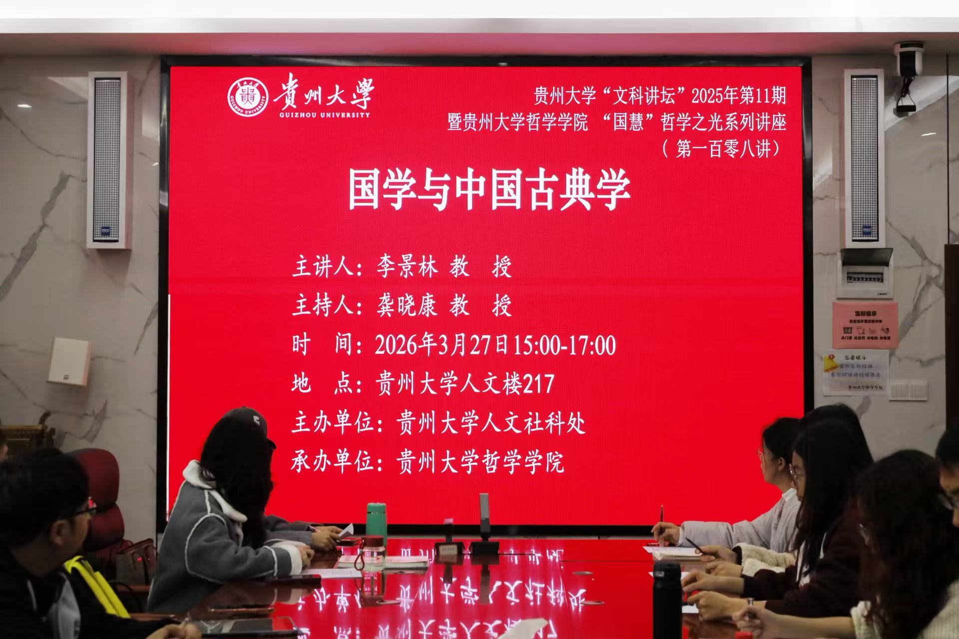 “国学与中国古典学” ——贵州大学“文科讲坛”2026年第11期暨哲学学院 “国慧”哲学之光系列讲座(一百零八讲)成功开讲