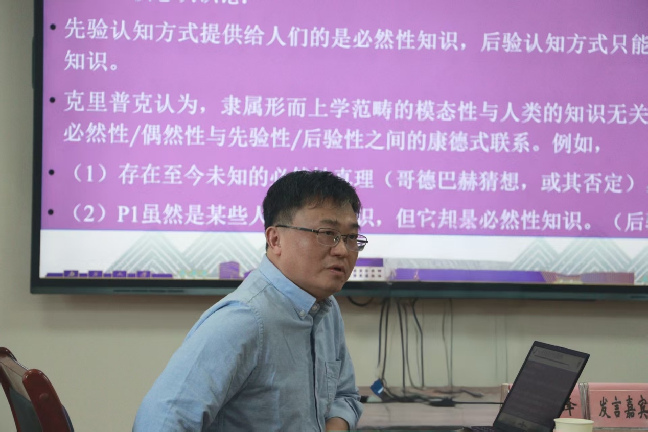 在交流讨论环节,张连顺教授等分别针对“如何理解维特根斯坦的语言游戏”“如何理解罗素的真与假”等相关问题与张力锋教授展开交流讨论,讨论内容主要涉及维特根斯坦哲学与罗素哲学之间的关系,对克里普克为先验偶然性论题所给出的巴黎标准米尺例的深入理解,以及所涉及的严格指示词、固定指称、索引词等。