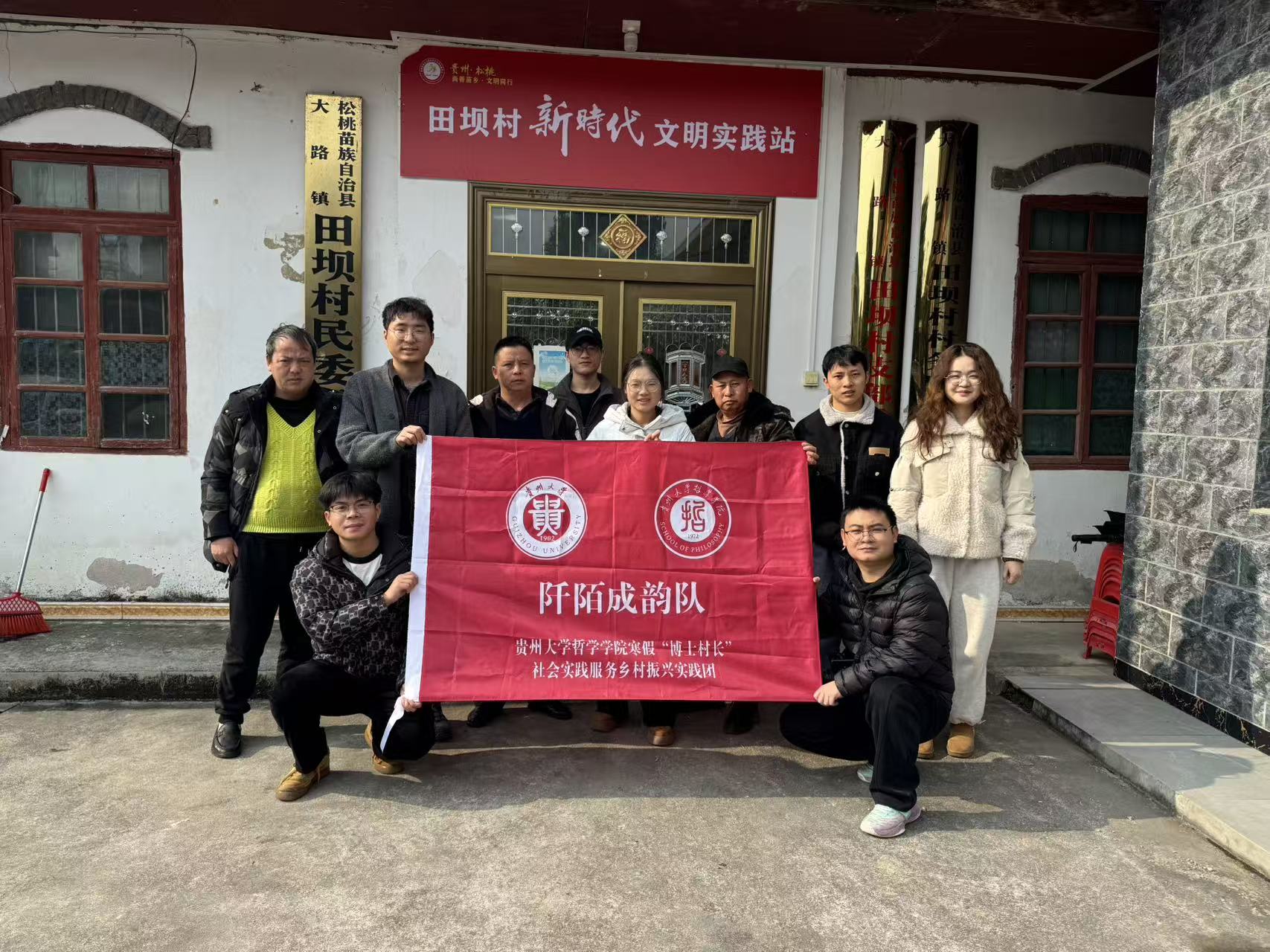 如何让哲学的理性之光深耕乡土中国?怎样以青年之智探寻乡村振兴的时代之问?2026年1月13日至28日,贵州大学哲学学院“阡陌成韵”实践队奔赴贵州省松桃苗族自治县田坝村,开展了一场以“扎根乡土·助力振兴”为主题的“博士村长”社会实践调研与志愿服务活动。在为期16天的调研中,实践队聚焦农业生产、基层治理、民生健康三大领域,综合运用入户访谈、座谈交流、政策宣讲等形式,在基层一线传递政策温度,在田野乡间收获实践真知,以青春行动为乡村振兴注入思想力量与人文关怀。